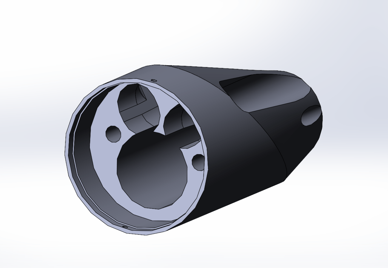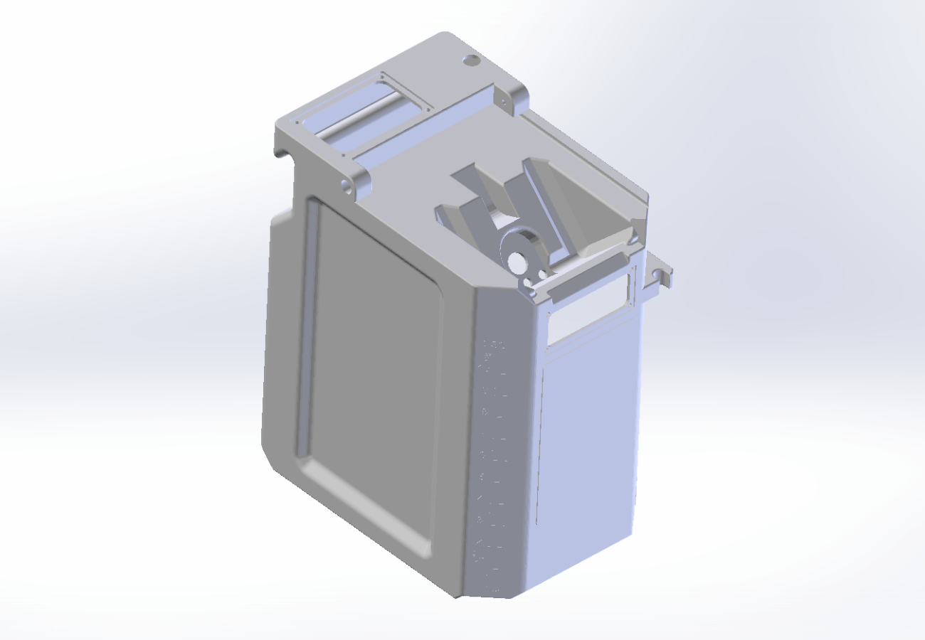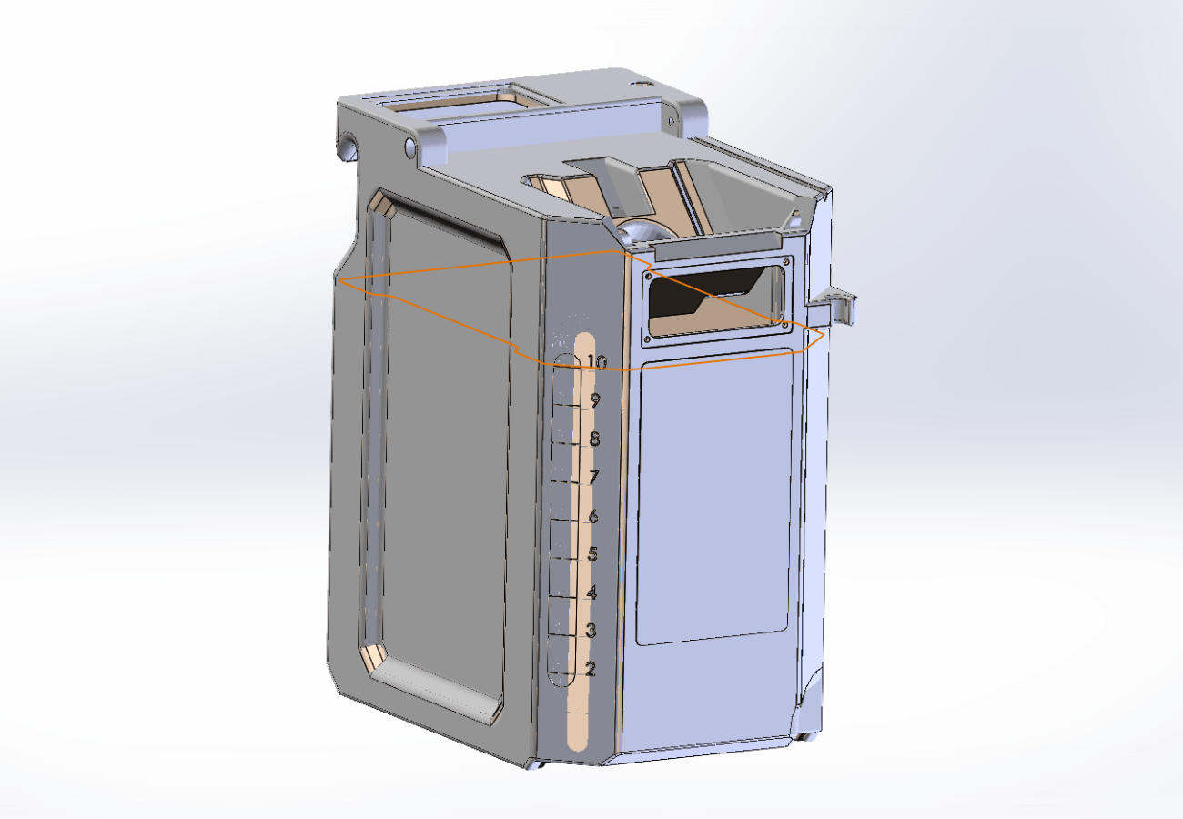 Modifications done to a 3D model of a plastic tank for blow molding.