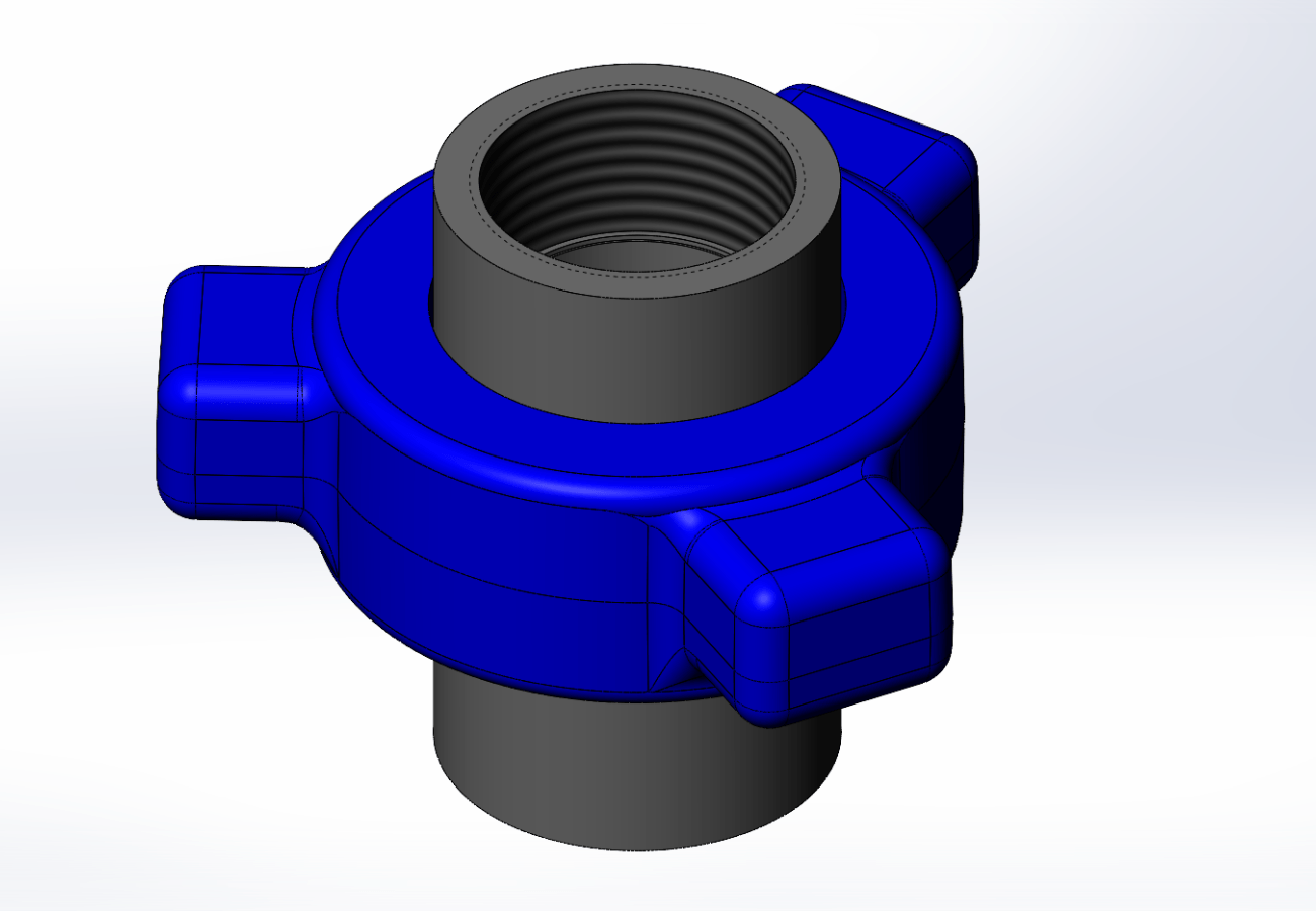 3D models of unions created through Scan-to-CAD for CNC machining.